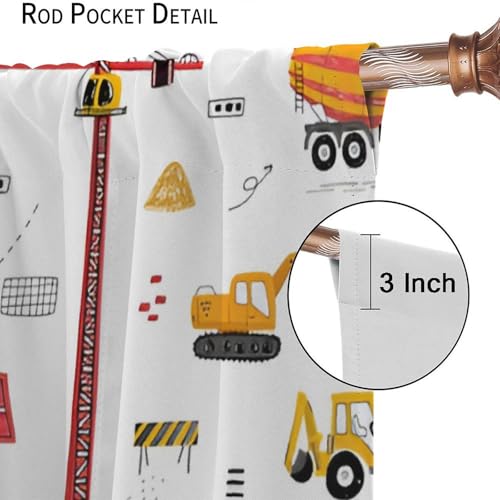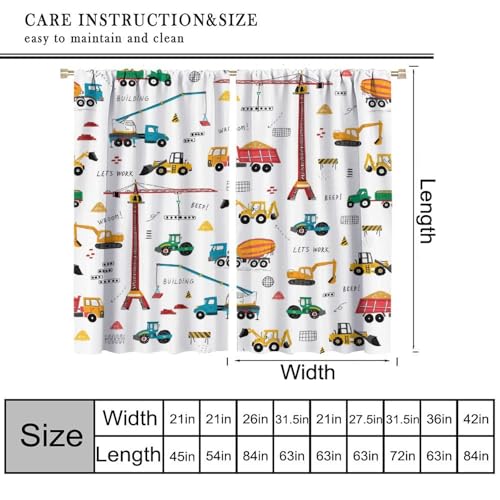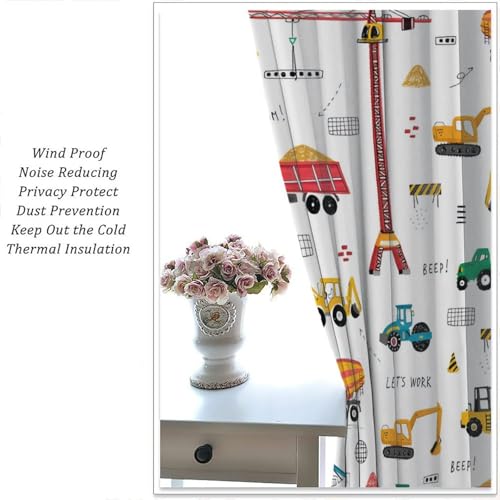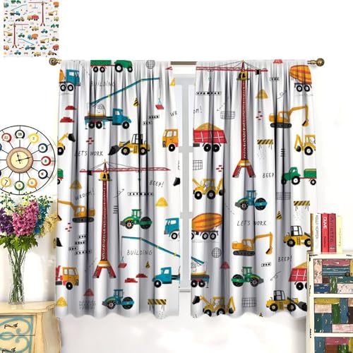 VUMIVI Cartoon Construction Trucks Curtains Hand Painted Graffiti Boys Machinery Window Treatments for Teens Kids Room Bedroom Nursery Room 42″ W X 44.5″ L【Decor】