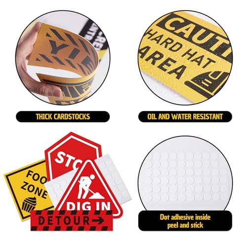 The Construction Party Sign Set is designed to enhance your child’s birthday celebration with designated areas for specific activities. This package includes 12 high-quality vinyl signs featuring fun messages like “Stop,” “Dump Gifts Here,” “Fuel Station,” and more, along with 60 sticky acrylic glue dots for easy installation. These waterproof and fade-proof signs withstand various weather conditions, making them suitable for both indoor and outdoor use. A great choice for a construction-themed party, this product also comes with a satisfaction guarantee for peace of mind.