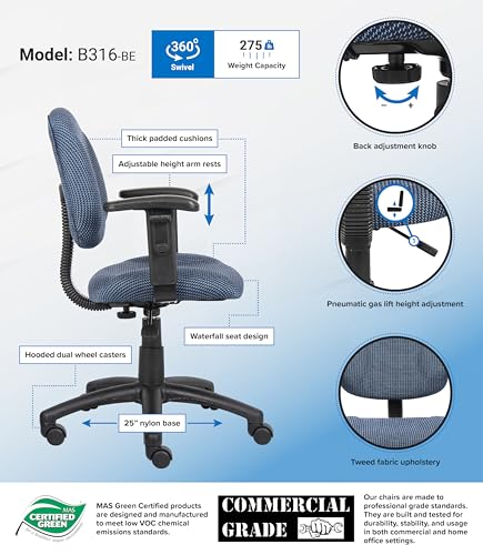Boss Office Products Perfect Posture Delux Fabric Task Chair with Adjustable Arms in Blue, 250 (B316-BE)
