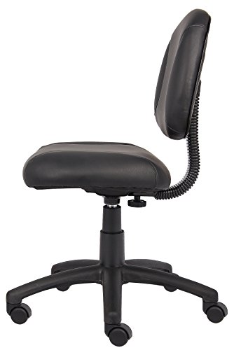 The adjustable desk chair offers a variety of customizable features to suit individual comfort and workspace needs. With a pneumatic gas lift, users can easily adjust the seat height and back depth. The ergonomic waterfall seat design reduces leg stress, while the thick padding and lumbar support enhance comfort during extended use. Its five-star nylon base ensures stability and effortless movement, supported by hooded double wheel casters. With compact dimensions, the chair accommodates a weight capacity of up to 275 lbs, making it a versatile addition to any office or home workspace.