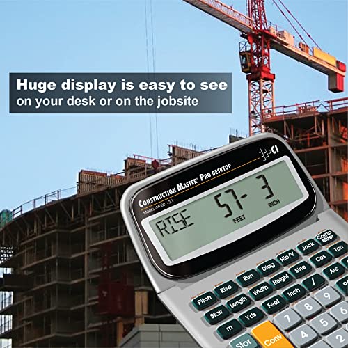 The CM Pro-Desktop construction calculator is an essential tool for interior designers and builders, providing quick and accurate dimensional calculations with its built-in solutions for various building formats. It includes advanced trigonometric functions and the ability to convert between measurements like feet, inches, and metric. The time-saving features for calculating right angles, stair layouts, and complex shapes make it invaluable for avoiding costly errors. With a user-friendly multi-position LCD display and comprehensive guides, this calculator is designed for convenience, ensuring you can work efficiently on any project.