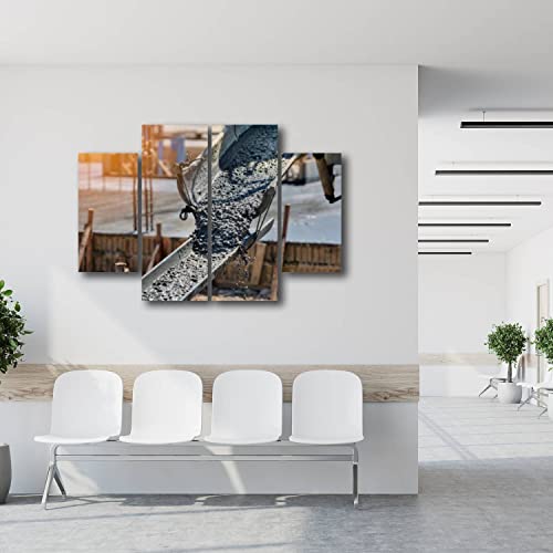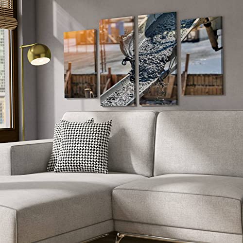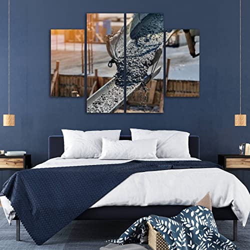 Canvas Wall Art Construction worker Concrete pouring during commercial concreting Wall Decor Modern Prints Framed Artwork for Bedroom Living Room Home Decoration Ready to Hang Gift 4 pcs