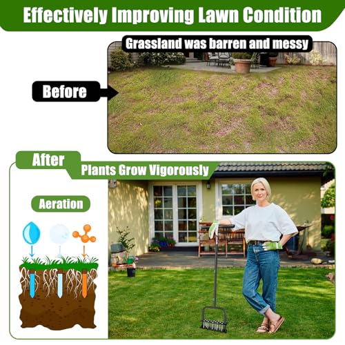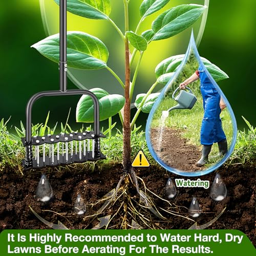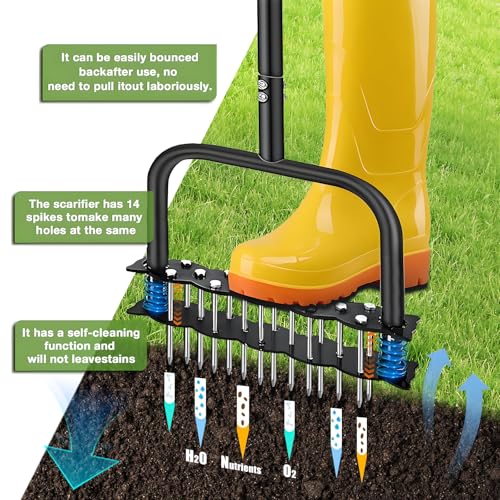 The Lawn Aerator is designed to revitalize your lawn effortlessly with its 14 sharp steel spikes that effectively loosen compacted soil for better air, water, and nutrient access. Equipped with high-quality springs, this aerator automatically retracts for efficient operation, enhancing root health and soil structure. Built with durable steel, it ensures long-lasting use across various soil types, making it an essential tool for garden maintenance. With a customer satisfaction guarantee, you can buy with confidence.