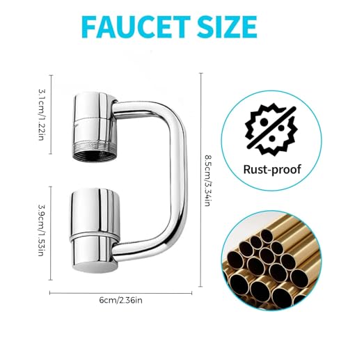 The Rotatable Faucet Aerator Extension offers a remarkable 1440° full rotation with a 4-joint design, providing ultimate flexibility for washing large pots and filling containers easily. It features two spray modes: a gentle aerated stream for handwashing and a powerful rinse for tough grime, while controlling splashes. Designed with universal fit adapters, it allows for easy, tool-free installation on most kitchen and bathroom faucets. Constructed from high-quality brass with a corrosion-resistant finish, this durable aerator enhances style and is built for long-term use, making it a reliable upgrade for your sink.