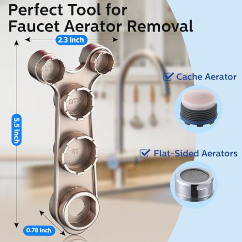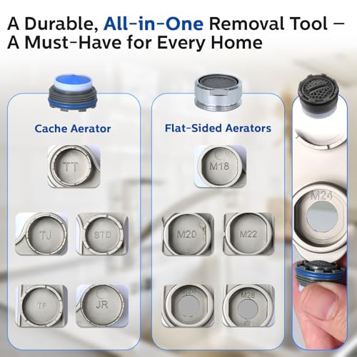 Tylola 11-in-1 Faucet Aerator Removal Tool – Universal Metal Aerator Wrench Key for TT, TJ, JR, STD, TF Recessed Sizes + M18 M20 M22 M24 M28 Threaded Housings – Ergonomic Handle, Rustproof Finish