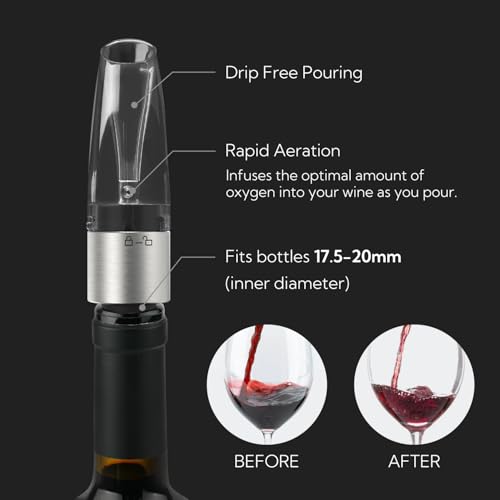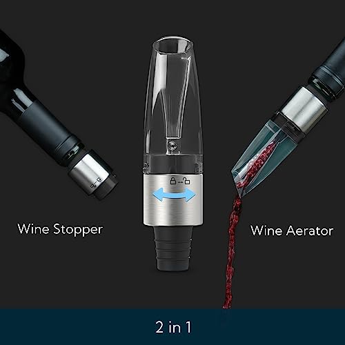 The KITCHENDAO wine aerator pourer & stopper combines functionality and convenience with a 2-in-1 design, featuring a built-in stopper for short-term storage. Its ergonomic spout enables drip-free pouring, preventing spills. Made from BPA-free, food-grade materials, it ensures durability and health safety. Ideal for enhancing the bouquet and flavor of your wine, this easy-to-use aerator adjusts to standard wine bottles effortlessly.
