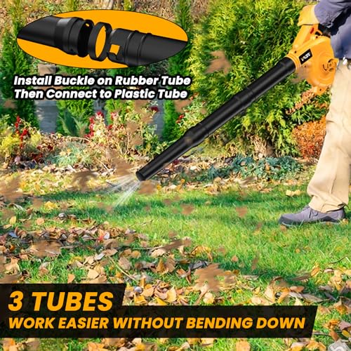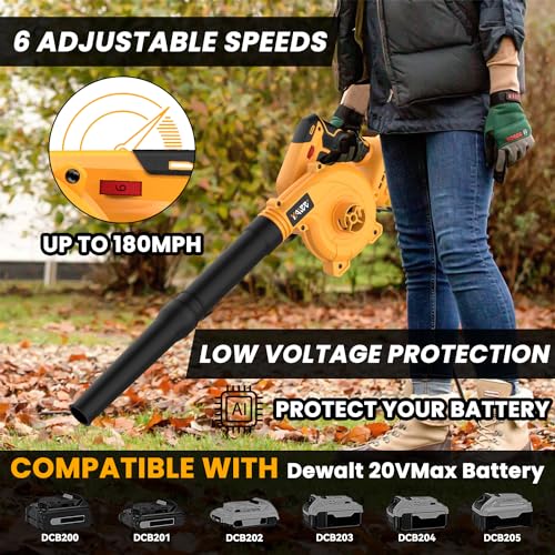 The electric blower is designed exclusively for use with Dewalt 20VMax Batteries and does not come with a battery included. With built-in low-voltage and over-current protection, it safeguards your batteries from damage. It features a high-performance brushless motor capable of reaching up to 18000RPM, offering improved efficiency and longevity. The blower boasts 6 adjustable speeds, enabling airflow between 70 to 180MPH, making it versatile for both indoor and outdoor tasks. This product is ideal for those who already own Dewalt batteries and are looking for an efficient leaf blower.
