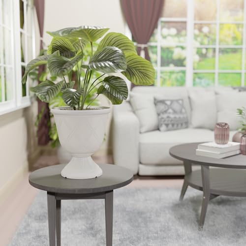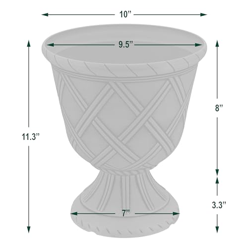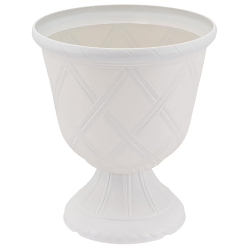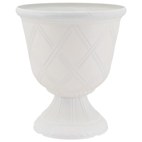 Arcadia Classic Decorative Garden Pot Planter for Indoor Plants, White, 10 x 11″ Lattice Plastic Garden Urn