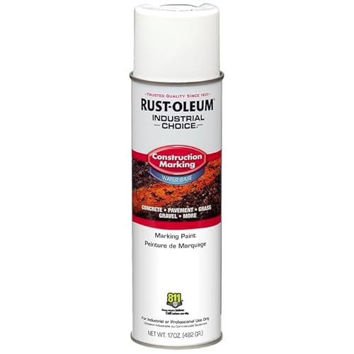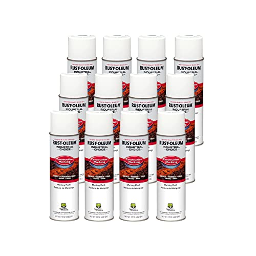 Rust-Oleum 264692-12PK Industrial Choice M1400 System Water-Based Construction Marking Spray Paint, 17 oz, Gloss White, 12 Pack
