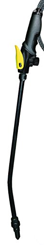 The landscaping sprayer is designed for user-friendliness with its convenient 1-step assembly: simply fill, pressurize, and spray. It effectively handles bleach and other harsh chemicals, making it perfect for cleaning bricks, tubs, showers, siding, and locker rooms. The comfortable shut-off grip allows for continuous spraying, and the adjustable poly nozzle provides versatility from a focused stream to a wide cone spray, ensuring efficient application for various tasks.