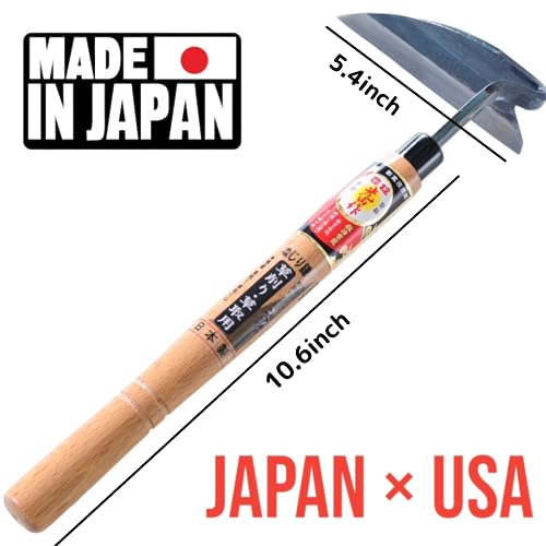 Introducing a high-quality Japanese manual weeder, expertly crafted from sharp steel and featuring a comfortable wooden handle. This durable gardening tool is perfect for tackling tough weeding tasks in tight spaces, aiding in the maintenance of new growth, and facilitating various garden activities. The forward weight and sharp edge of the blade allow for efficient and swift weeding, making gardening easier and more enjoyable.