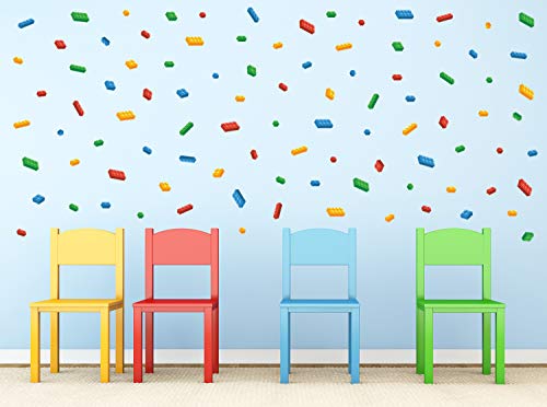 Sunny Decals Mini- Building Block Bricks Fabric Wall Decals, Set of 98 Blocks in 4 Colors – Removable, Reusable, Respositionable