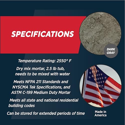 Dry Mix 211 is a high-quality refractory mortar designed specifically for repairing and joining fire brick and masonry flue tiles in fireplaces and chimneys fueled by gas, wood, coal, or pellets. Simple to use, it easily mixes with water at a ratio of 2.5 lbs of dry mortar to 8 oz of water. This versatile mortar cures completely without the need for heat, as it hardens simply through exposure to air. All components are proudly manufactured in the USA, ensuring a reliable product for your masonry needs.