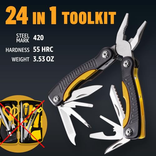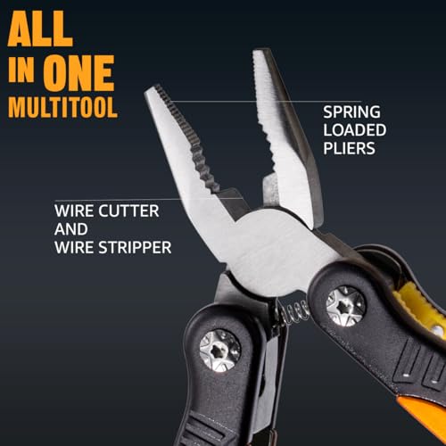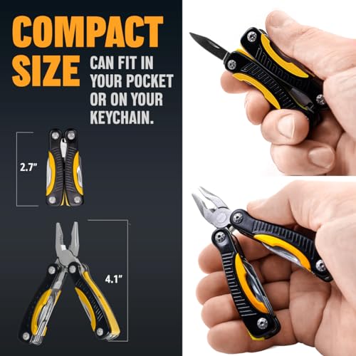 The 12-in-1 Mini Multitool is an essential outdoor companion designed for camping, hiking, and various outdoor activities. Made from high-quality 420 stainless steel and featuring an aluminum handle, it includes 12 integrated components, such as spring-loaded pliers, a folding knife, and screwdrivers. Measuring 4.3 inches and weighing just 3.5 ounces, this sleek multitool is lightweight and compact, making it perfect for everyday carry. Its unique design not only enhances functionality but also makes it a thoughtful gift for any occasion, appealing to everyone from outdoors enthusiasts to professionals. Whether for a birthday, retirement, or holiday, it’s an excellent stocking stuffer for men of all ages.