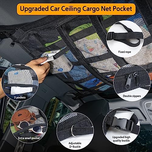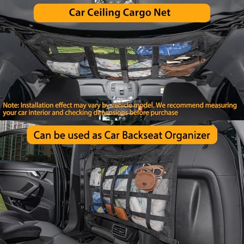 The Car Ceiling Cargo Net is a practical addition for any vehicle enthusiast looking to maximize storage while on the road. With its adjustable D-shaped buckle and three reinforced hook-and-loop straps, it securely holds belongings, making it ideal for small items like tissues, glasses, and toys. Designed for easy installation on vehicles with four handles, this cargo net is layperson-friendly, needing no tools. Its dimensions (31.5×21.6 inches) and extended fixing rope (25.98 inches) ensure compatibility with most SUVs, mini vans, and cars. Perfect for road trips and camping, it enhances your car’s storage space, keeping essentials organized and within reach. However, it is essential to check vehicle compatibility and interior dimensions before making a purchase.
