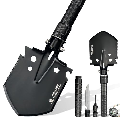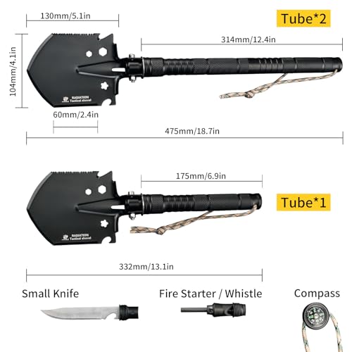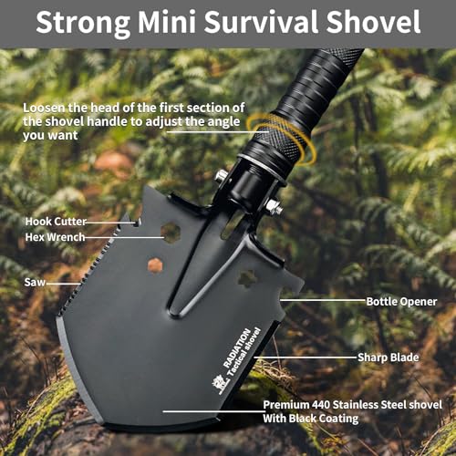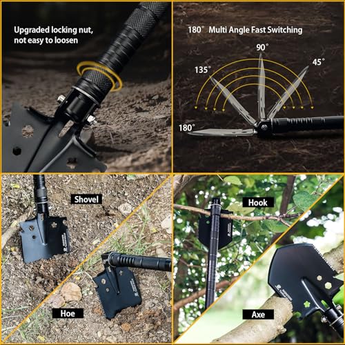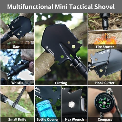 HX OUTDOORS Tactical Survival Shovel, Collapsible and Foldable Entrenching Tool, Portable Multitool for Camping, Hiking, Car Emergency and Outdoor Use
