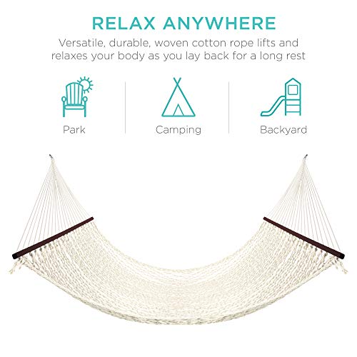 Best Choice Products 2-Person Double Hammock, Outdoor Woven Cotton Rope Hammocks for Backyard, Patio w/Spreader Bars, Carrying Case, 450lb Weight Capacity