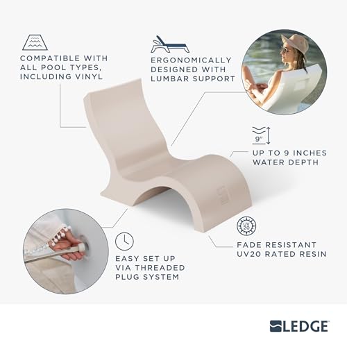 The Ledge Lounger’s Signature Lowback Chair offers elegant poolside comfort, designed for both in-pool and on-deck use, providing a modern aesthetic that enhances relaxation. This set of two durable resin pool lounge chairs is perfect for sun-soaked patios and sundecks. They are easy to maintain with just a simple wipe clean, ensuring long-lasting appeal. These stylish loungers combine functionality and luxury, making them a must-have for any outdoor space.