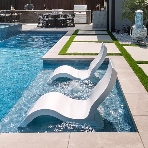 Ledge Lounger Signature Lowback Chair for in Pool or On-Deck Use – Ideal Water Depths 0-9 White Pool Lounge Chairs Set of 2 for Socializing