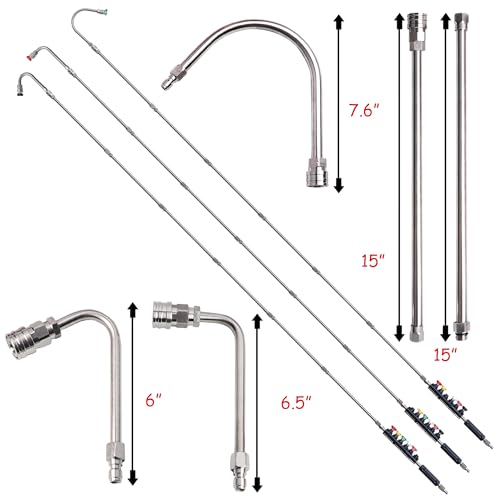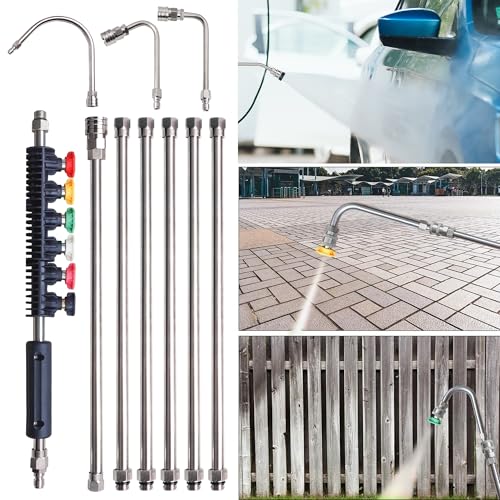Xiny Tool Pressure Washer Extension Wand, 10 Pack Power Washer Lance with 5 Atomization Nozzle Tips,1 Gutter Cleaner Attachment Curved Rod, 1/4″ Quick Connect, 4000 PSI