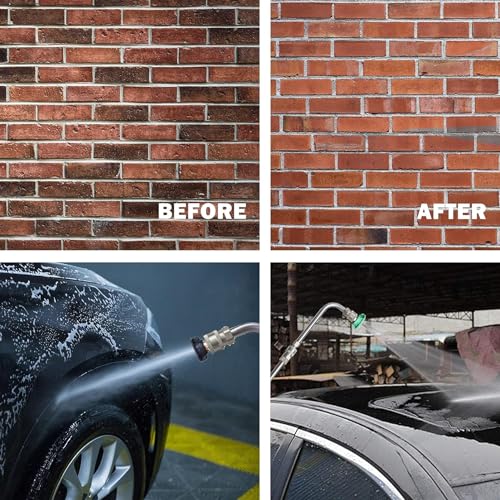 The Xiny Tool Pressure Washer Extension Wand Package includes a comprehensive set designed for effective outdoor cleaning. It comes with 7 high-quality wands of various shapes including straight, 30°, 90°, and U-shaped, allowing versatility for different cleaning tasks. The package features six spray nozzle tips suitable for various applications, from soap to high-pressure spray, capable of handling tough grime, with maximum working pressure of 4000 PSI and a temperature of 140°F. Made of solid stainless steel, these durable extension wands are suitable for cleaning roofs, walls, gutters, and more, ensuring accessibility and efficiency in outdoor maintenance.