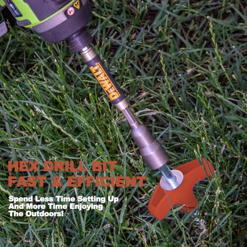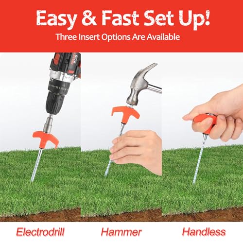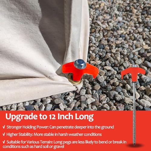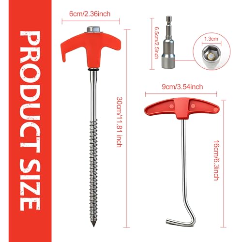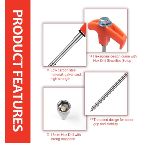 Introducing our heavy-duty 12-inch screw-in tent stakes, designed for exceptional holding power in various soil types, including grass, hard soil, and gravel. Installation is effortless with the included 13mm hex nut driver, allowing use with a cordless drill or sledgehammer. With a length of 12 inches, they offer superior strength compared to standard stakes, making them ideal for camping and gardening. Crafted from high-quality, rust-resistant carbon steel, these stakes are built to withstand harsh conditions, ensuring reliability season after season.