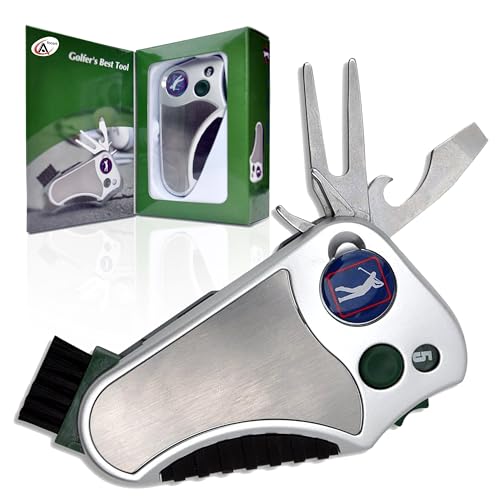 The All-in-One Golf Companion is a must-have for any golf enthusiast. This versatile gadget integrates six essential tools, including a stroke counter, divot repair tool, brush, ball marker, cleat tightener, and club groove cleaner, all packed into a compact design. Its lightweight, pocket-friendly construction features stainless steel tools and a rubberized, non-slip grip for comfort and durability on the course. With a strong aluminum clip, it securely attaches to your belt or bag for quick access during play. As a bonus, it even includes a bottle opener and screwdriver, ensuring you’re always ready for a cold drink and minor repairs. A perfect blend of practicality and convenience for every golfer!