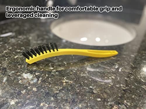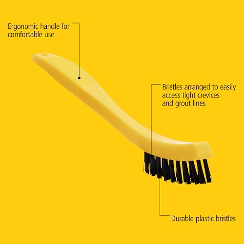 The brush cleaner is specially designed for effective scrubbing of grout, tile, and small areas, making cleaning effortless. Its durable construction features long-lasting plastic bristles, ensuring you can tackle tough jobs without worrying about wear and tear. The bristles are strategically arranged to easily access tight crevices and grout lines, allowing for thorough cleaning in hard-to-reach spots. Additionally, the convenient storage option with a hole in the handle enables you to hang the brush when not in use, keeping your workspace tidy and organized.