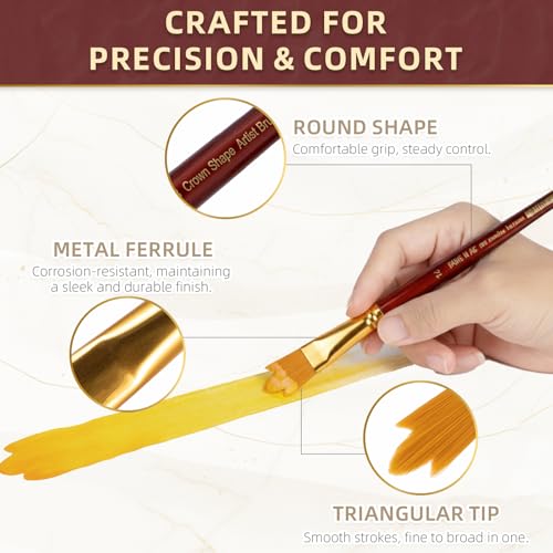 The Falling in Art brush set offers a variety of bristle styles—including flat, filbert, dagger, and more—ideal for both beginners and experienced artists. These brushes excel in creating textures like grass, fur, and feathers, enhancing wildlife and botanical artwork. Their ergonomic wooden handles provide a comfortable grip, preventing hand fatigue during extended use. With double-crimped metal ferrules, the brushes showcase durability and stability. Falling in Art is dedicated to supplying premium art materials, ensuring customer satisfaction with reliable support.