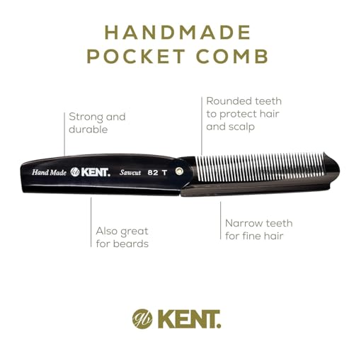The Kent Comb is a high-quality grooming tool designed for men, women, and kids. Measuring 7.87 inches open and 4 inches closed, it features a stylish black graphite finish. Handmade from cellulose acetate, this saw-cut, fine-toothed comb offers a smooth, snag-free experience while stimulating the scalp and natural oils of your hair. Its flexible and durable design makes it waterproof, ideal for grooming on-the-go. With the Royal Warrant of the Queen, Kent showcases its long-standing heritage since 1777, ensuring you receive a premium quality product for your grooming needs.