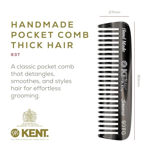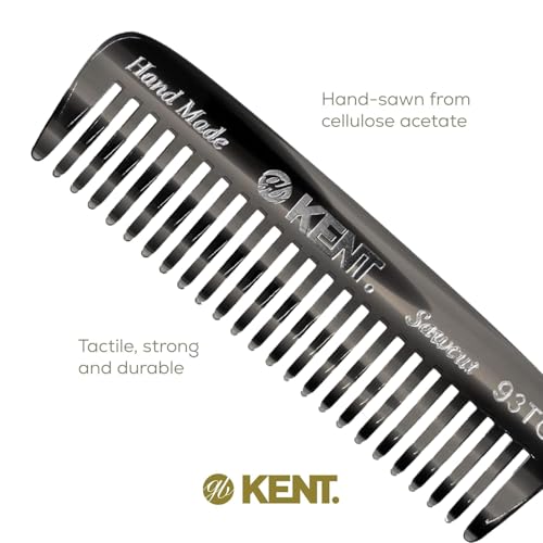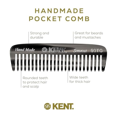 Kent 93T Black Graphite Wide Tooth Men’s Comb, for Mustache and Beard ideal for Facial Hair, Small Pocket Sized Travel Detangler Comb, Saw-Cut Hand polished Made in England