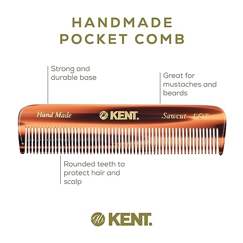The Kent 4.5 Inch Lacquer Comb is an exceptional grooming tool perfect for fine or thinning hair and beard care. Its saw-cut, hand-polished design features soft rounded teeth that promote scalp stimulation and distribute natural oils. Crafted from cellulose acetate, it minimizes static and provides a durable, waterproof option for both wet and dry hair. Its compact size makes it an ideal travel companion for grooming on the go. Backed by centuries of craftsmanship, Kent guarantees quality with a Royal Warrant. Suitable for men, women, and children alike, this comb enhances any grooming routine.