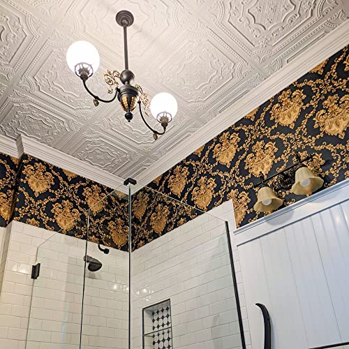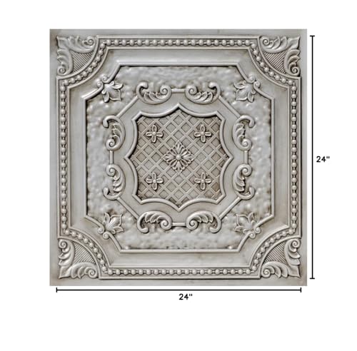 From Plain To Beautiful In Hours DCT04 Elizabethan Shield PVC 2′ x 2′ Lay-in or Glue-up Ceiling Tile (Covers / 40 sq.ft), Antique White, 10 Piece