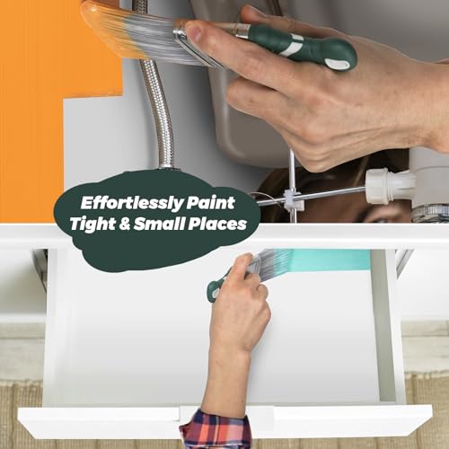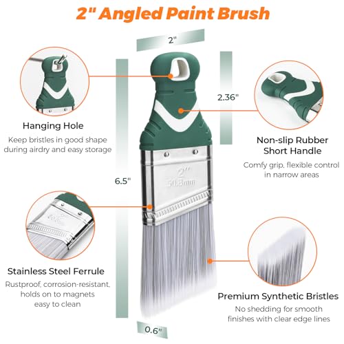 The 2-Inch short handle angle paint brush set comes with three brushes, each designed for versatility and performance. Featuring premium synthetic bristles, these brushes hold paint well and provide smooth finishes without streaks. The compact rubber handle enhances control, reducing hand fatigue during painting tasks. Perfect for various applications, including walls, ceilings, and furniture, these brushes are suitable for all types of paints, ensuring professional results for both large areas and detailed work.