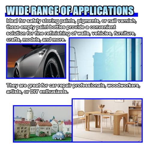The Touch-Up Paints are crafted from high-quality HDPE material, ensuring durability against various liquids, from paints to solvents. Featuring a translucent design for easy color identification, it comes with a child-safe cap and a built-in brush bar for hygiene. These bottles are versatile for automotive refinishing, furniture, and craft projects, making them an essential tool for professionals and DIY enthusiasts. This set includes three bottles, brushes, and mixing balls, providing a compact and practical solution for your painting needs.