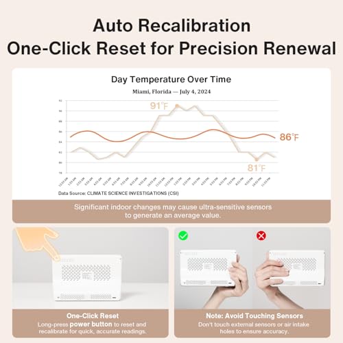 The 16-in-1 Air Quality Monitor is a comprehensive solution for indoor air quality assessment, detecting 9 critical parameters, including CO2, PM2.5, PM1.0, PM10, HCHO, TVOC, temperature, humidity, and AQI. It features external high-precision sensors providing remarkable accuracy with 0.001 unit precision. Real-time alerts for these pollutants are signaled via 7 distinct AQI buzzers, ensuring you are always informed about your environment. The device also allows easy switching between Fahrenheit and Celsius for temperature readings, ensuring user convenience. However, care must be taken not to touch the sensors or expose them to strong odors to maintain accuracy. Ideal for families looking to enhance their air quality monitoring.
