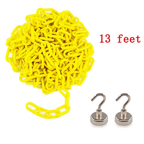 The 13 Feet Loading Dock Plastic Chain is designed for safety and crowd control, featuring bright yellow coloration for high visibility. Made from durable high-density polyethylene, it withstands weather conditions without fading or rusting, making it reliable for both indoor and outdoor use. This chain comes with two magnetic hooks for easy setup and customization to fit various needs, ensuring effective safety barriers in different environments.