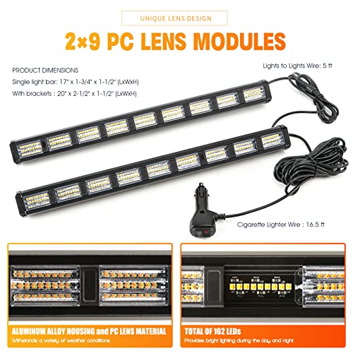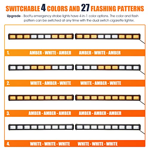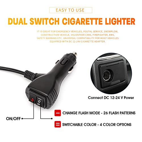 The BooYu Emergency Strobe Lights offer an upgrade with 4-in-1 color options, allowing for easy switching between 27 flash modes through a dual switch cigarette lighter. With 162 high-power LEDs, these lights ensure superior visibility day and night, boasting an impressive lifespan of up to 50,000 hours. They are universally compatible, perfect for various emergency vehicles, and equipped with a 16.5 ft heavy-duty cable for easy plug-and-play installation. The unit also features four strong suction cup brackets, guaranteeing stable attachment to your vehicle’s windshield, ensuring it stays secure while driving.