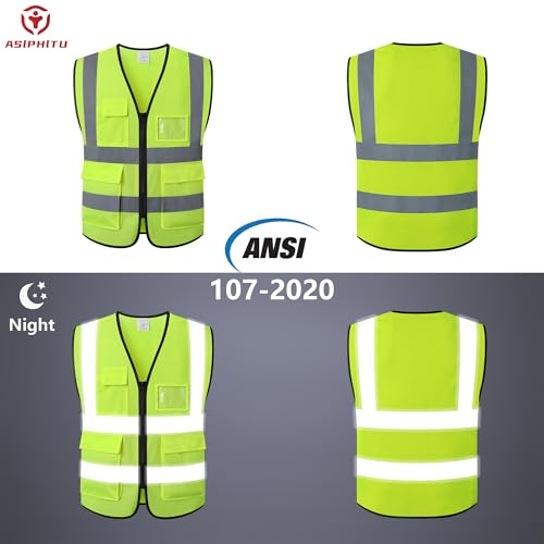 The Asiphitu High-Visibility Safety Vest is designed for optimal safety and comfort. Made from 100% breathable polyester mesh, it is lightweight and quick-drying, making it ideal for various weather conditions. Equipped with 2-inch wide reflective silver tape, it ensures visibility both day and night with 360-degree reflective coverage. The vest features a total of 5 pockets, including 2 large lower pockets, facilitating easy access to tools and personal items. It meets ANSI/ISEA 107 Class 2 standards, providing assurance of compliance and quality. In case of any manufacturing issues, customer support is prompt, responding within 12 hours.