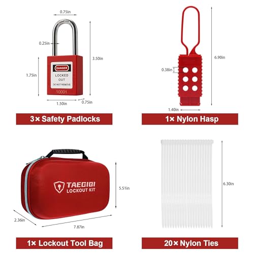 This 42-piece Lockout Tagout Kit provides comprehensive electrical safety management, featuring three safety padlocks, two steel hasps, one insulated nylon hasp, 15 lockout tagout tags, and 20 nylon cable zip ties, all conveniently stored in a portable bag. The kit’s OSHA-compliant padlocks are constructed of heavy-duty stainless steel with dual keys and unique engraved codes for traceability, meeting rigorous standards for hazardous energy isolation. It includes both tamper-proof steel hasps and a flexible nylon hasp for use in explosive environments, enabling multi-person lockouts to prevent unauthorized activation. Ideal for various industries such as electrical, mechanical, and pipeline maintenance, this kit significantly reduces fire risks and equipment damage by blocking accidental energization.