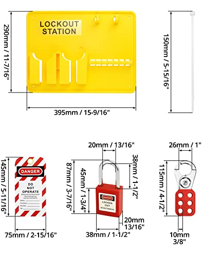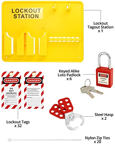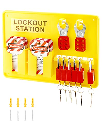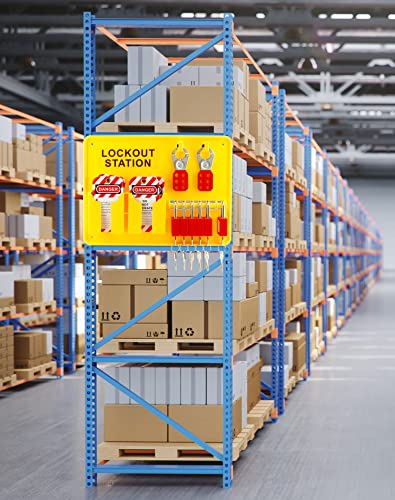 The Lockout Tagout Station Kit is a complete LOTO solution designed to enhance workplace safety during maintenance procedures. It includes a Lockout Station, 2 1″ hasps, 6 safety padlocks, 20 zip ties, and 32 PVC writable tags. Made from robust polypropylene, it offers chemical resistance and durability. Each 1″ hasp accommodates up to 6 locks, ensuring worker safety. The included tags effectively communicate hazards, making it suitable for industrial and machinery maintenance applications.