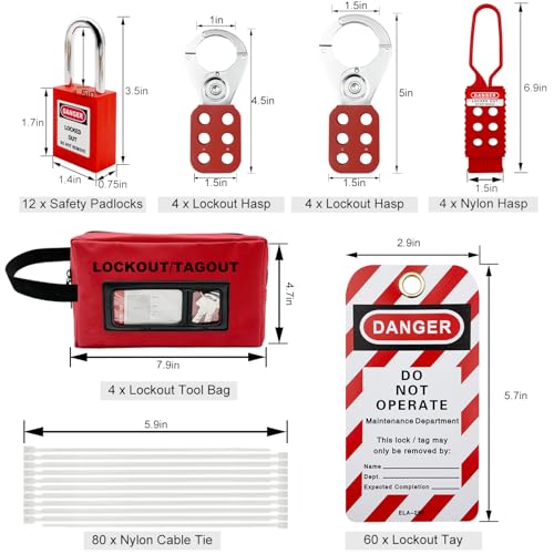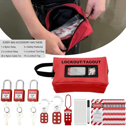 The Lockout Tagout Kits are designed to enhance workplace safety and compliance. Each purchase includes four complete LOTO kits, which contain essential items like safety padlocks, hasps, tags, cable ties, and a convenient nylon pouch. The kits meet OSHA standards, ensuring electrical and mechanical safety in various environments. The durable steel hasps and weather-resistant tags provide exceptional durability, while the compact design allows for easy transport and organization. Ideal for teams or multiple workstations, these kits support efficient and compliant lockout/tagout procedures.