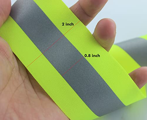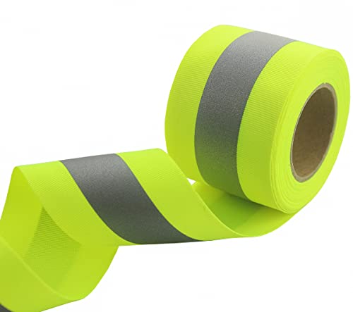 Introducing high-visibility reflective tape designed for safety and security. With a width of 50mm (2 inches) and a length of 5 meters (16.5 feet), this tape features a 20mm (4/5 inch) reflective vinyl strip at its center, ensuring excellent visibility in low-light conditions. The tape has a thickness of 0.28mm and a brightness rating exceeding 380 cd/(lx/㎡), making it incredibly bright and ideal for safety applications. Made from soft and flexible materials, it is easy to apply, and its iron-on feature adheres securely to fluorescent yellow webbing, making it suitable for a variety of reflective clothing applications.