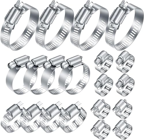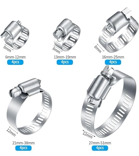 The adjustable hose clips are crafted from high-quality stainless steel, ensuring strength, durability, and resistance to rust and corrosion. This versatile kit includes 20 pieces in five sizes (6-12mm, 13-19mm, 16-25mm, 21-38mm, 27-51mm), making it ideal for various applications. Users will appreciate the easy-to-use design, which allows for quick adjustments with a screwdriver, perfect for both professionals and beginners. The product also comes with a satisfaction guarantee, offering reliable customer support in case of any issues.