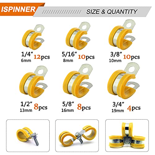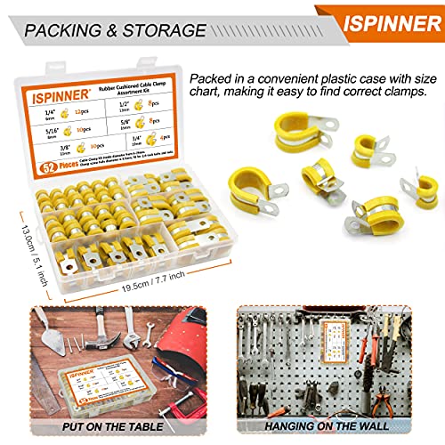 This assortment kit features 52 high-quality rubber cushioned stainless steel cable clamps, ensuring robust corrosion and acid resistance for durability. With six sizes available ranging from 1/4 inch to 3/4 inch, these clamps are ideal for various applications, including automotive and household use. Their unique design, with a wider 19mm clamp, minimizes vibration and offers added protection for pipes and cables, making them essential for secure line management and repair across multiple settings.