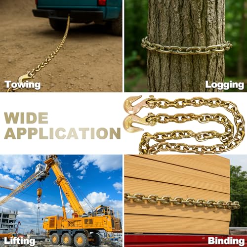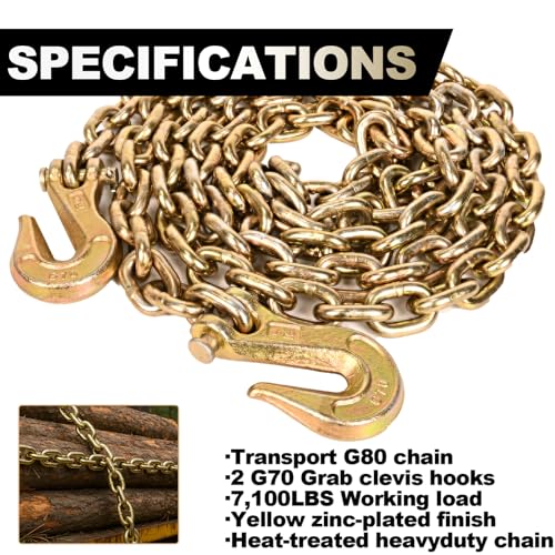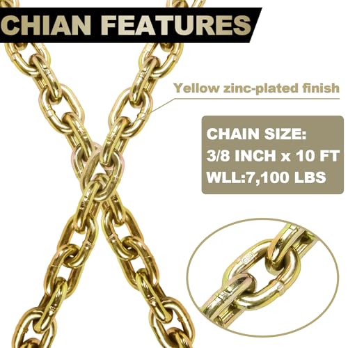 The 3/8IN x 10FT heavy-duty chain is designed for tough jobs with a remarkable 7,100 LBS working load limit, ideal for towing, lifting, and binding applications. Constructed from premium steel, it offers exceptional durability and wear resistance, ensuring long-lasting performance even under extreme conditions. This versatile chain is perfect for various industries, including transportation, farming, construction, and more, making it an essential tool for securing loads, pulling equipment, and lifting heavy objects. Moreover, it is engineered for maximum safety and strength, meeting industry standards for secure and stable load management.