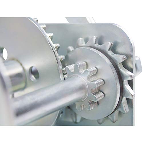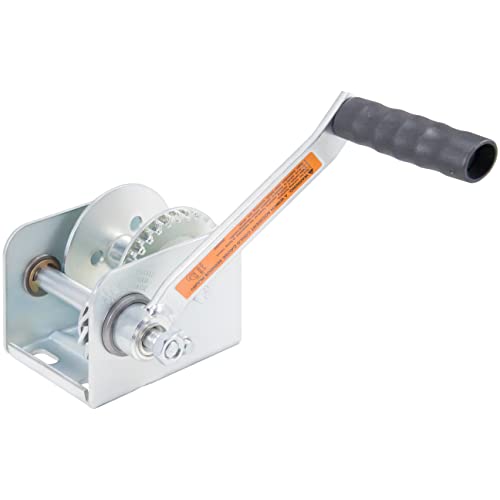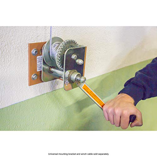 This lifting equipment is designed for efficiency and ease of use. It boasts a robust 350 lb. capacity, making it suitable for a variety of lifting tasks. The 3.2:1 gear ratio allows for effortless lifting, requiring only 3.2 revolutions of the handle to turn the drum once. The 7-inch handle is equipped with an ergonomic molded grip for comfort during operation. Additionally, the automatic brake feature ensures that loads remain securely in place, even when the handle is released, providing enhanced safety and control.