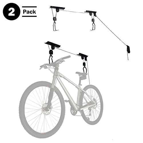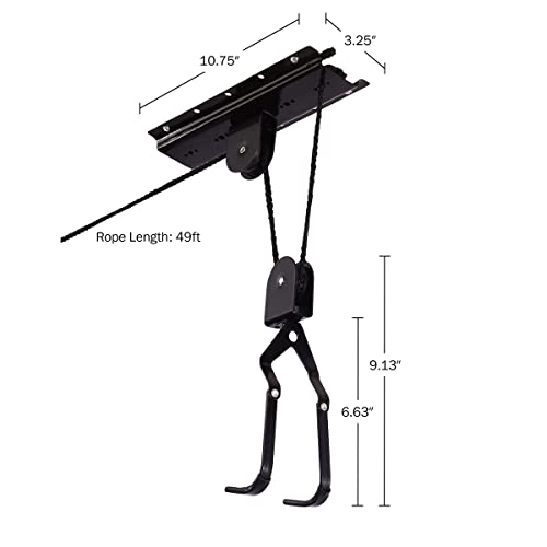 The RAD Bike Hoist is a highly functional lifting equipment designed for easy garage storage of bicycles and kayaks. Its rubber-coated hooks protect your bike from scratches while ensuring a secure grip. Installation is straightforward, requiring only minimal tools, making it user-friendly. Capable of lifting up to 100 lbs, it is built with robust engineering to handle heavy products effortlessly. The safety locks prevent accidental release, ensuring your bike remains safe and secure. This original hoist offers a reliable solution for keeping your space organized and your bikes out of the way.