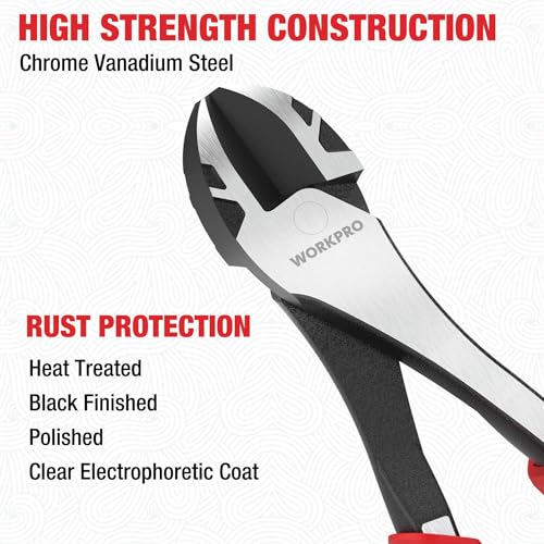 WORKPRO 8 Inch High Leverage Diagonal Pliers, Wire Cutters Heavy Duty in CRV Steel, Diagonal Cutters for Cutting Wires
