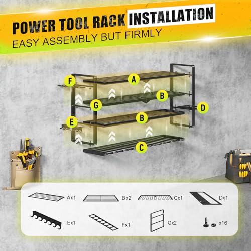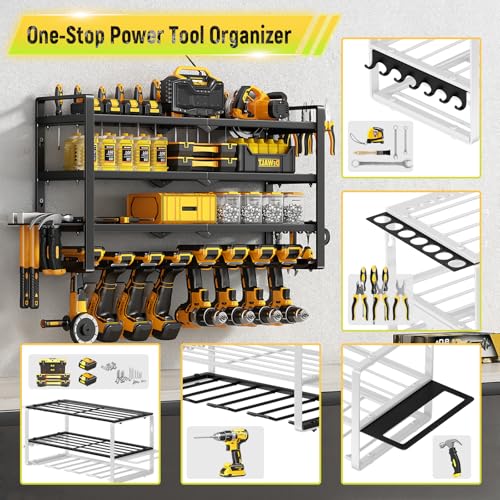 The 4-tier tool organizer wall mount is designed to hold up to 400 lbs, assuring durability and stability thanks to its heavy compact steel construction. It comes with all necessary mounting hardware and clear instructions for easy setup, facilitating quick installation. The powder-coated alloy steel finish is rust-resistant, corrosion-resistant, and scratch-resistant, ensuring longevity. This organizer is perfect for garages, workshops, or tool rooms, making it an ideal gift for occasions like Father’s Day, Christmas, or birthdays for any man in your life.